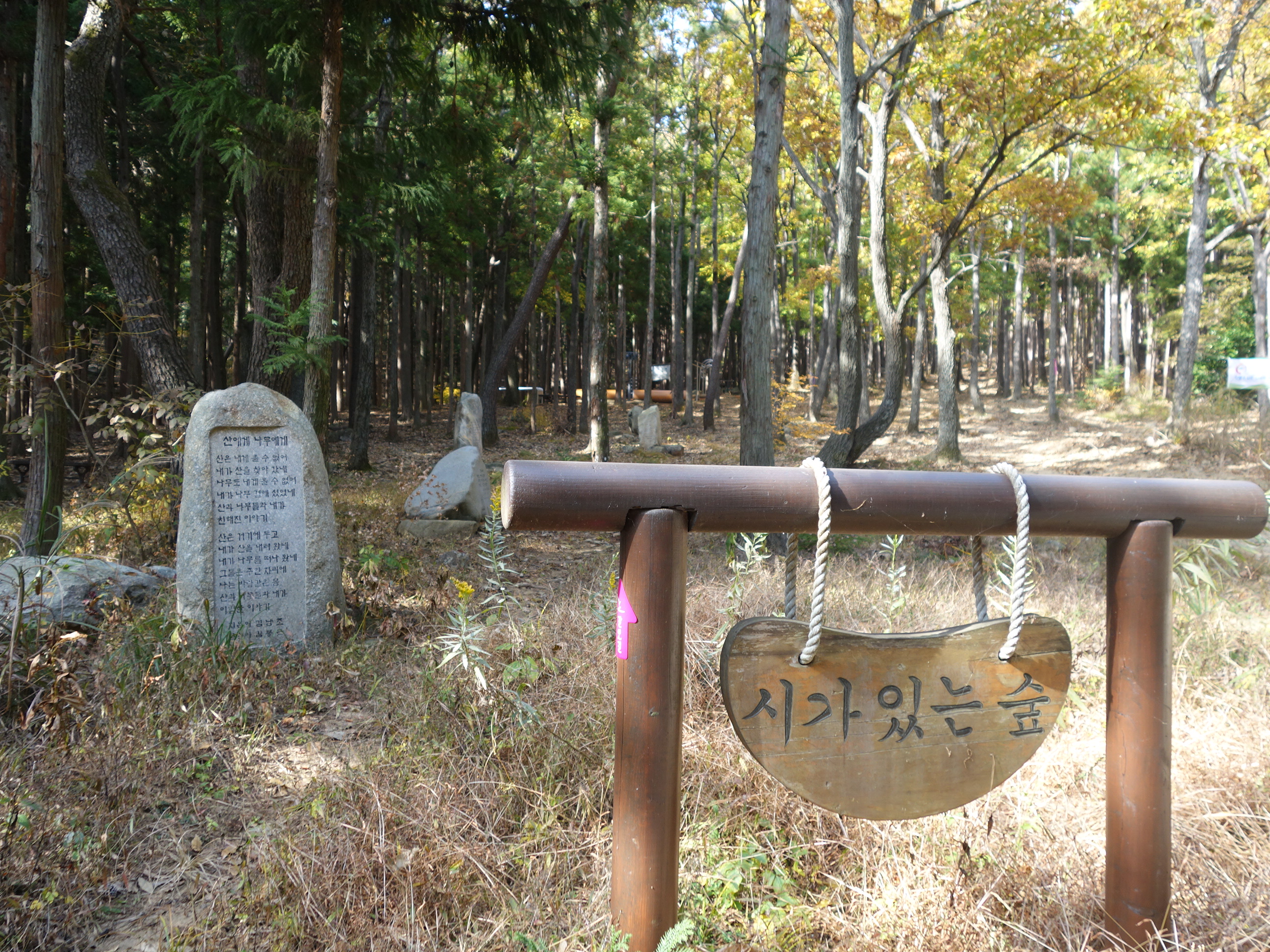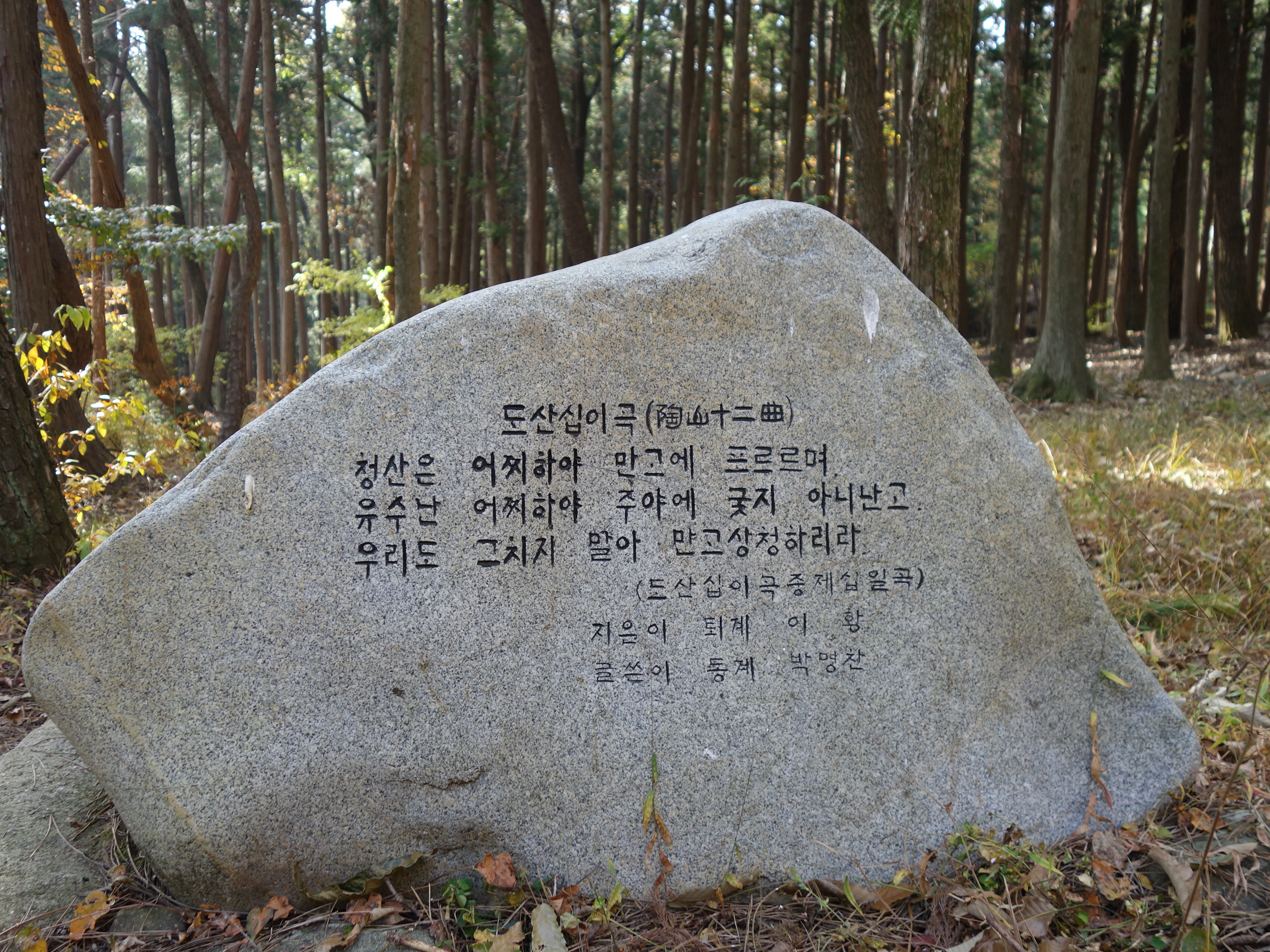 ---도산십이곡 중에서 퇴계 이황--- 시가 있는 숲에서. 이 길은 갈맷길 6코스의 일부이기도 하다.