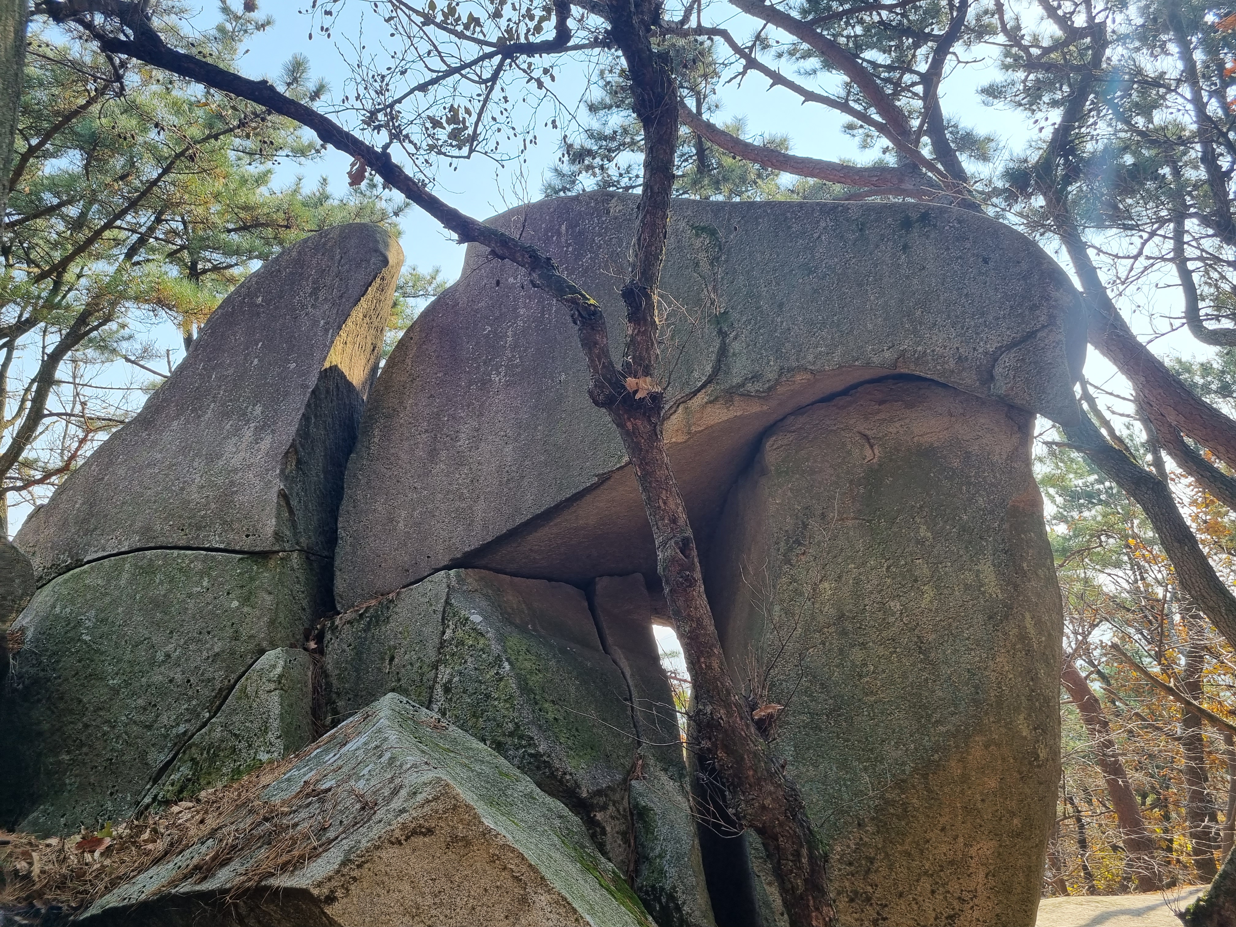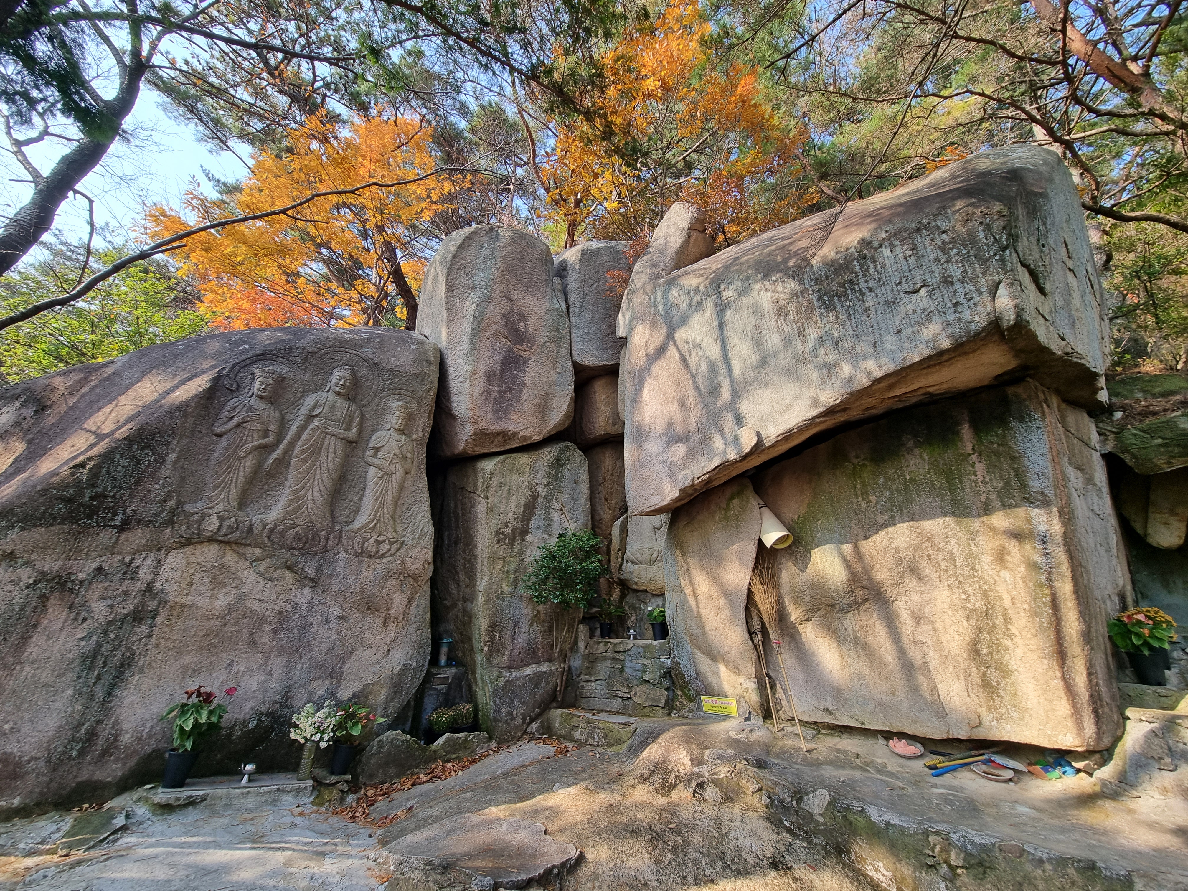 하산길에 만나는 마애불 기도처 부근 단풍은 절정이다.