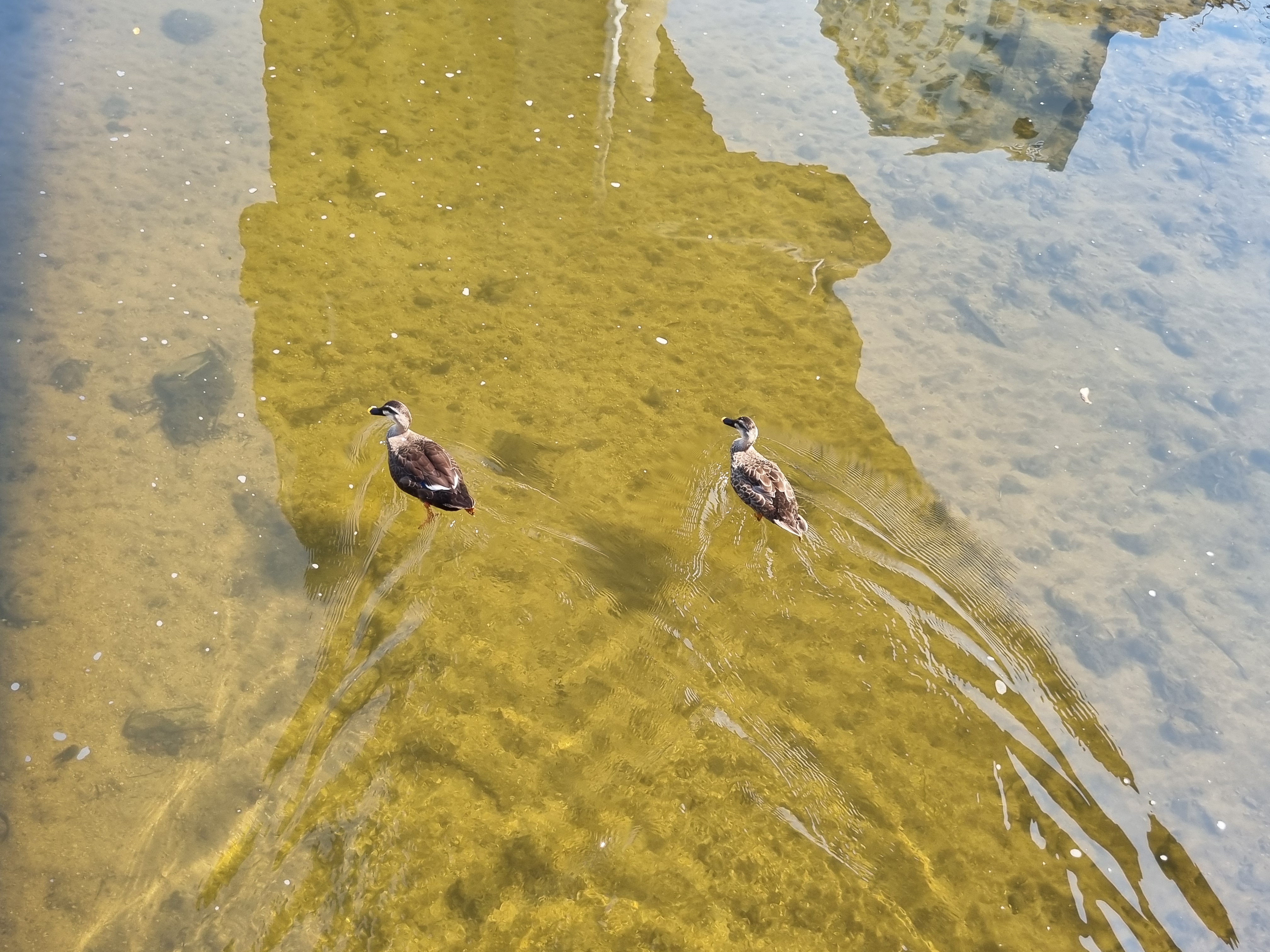 ↑ 아기 오리 두 마리가 열심히 헤엄쳐 온천천을 거슬러 올라간다.