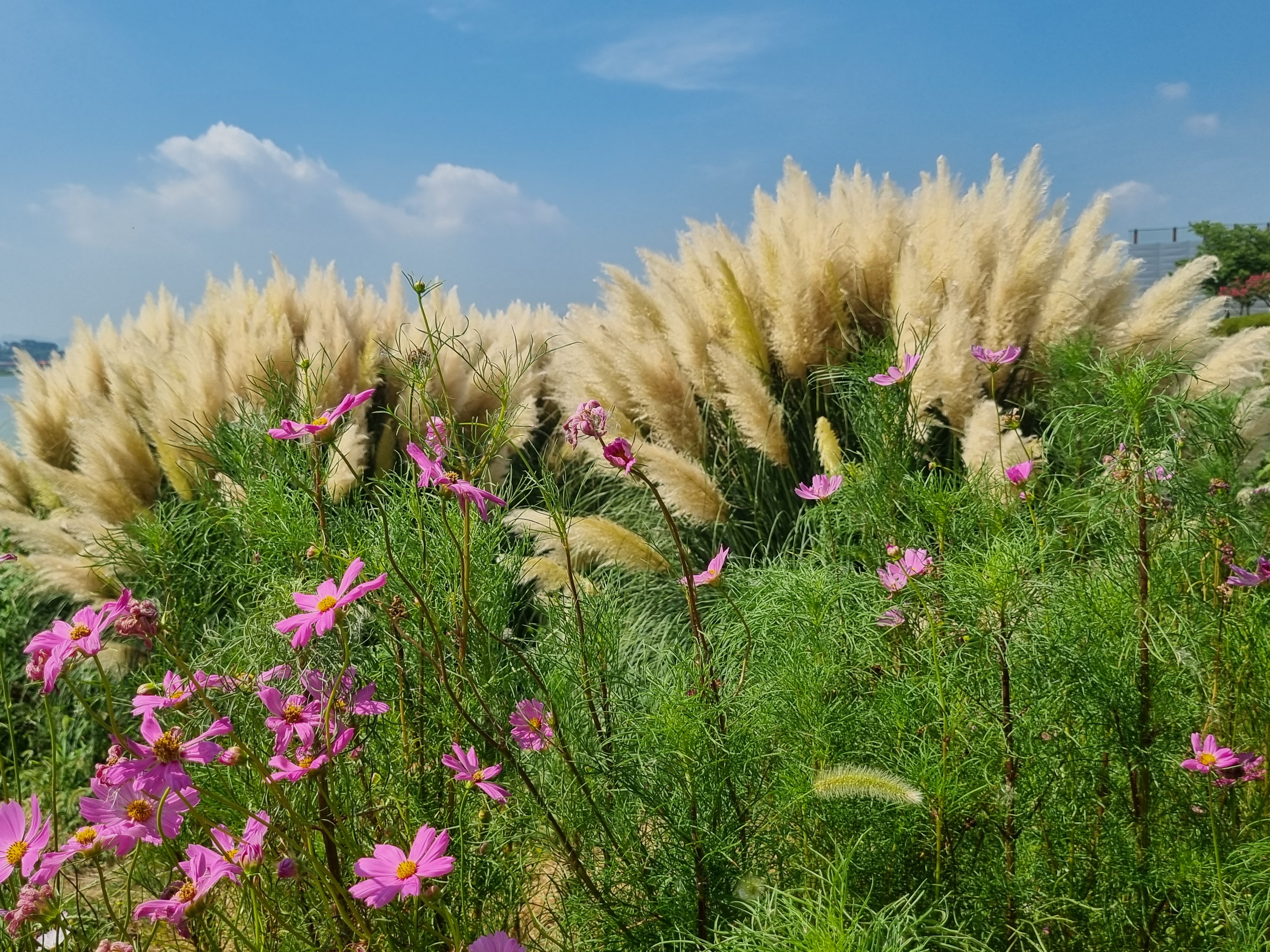 ↑ 코스모스꽃은 시들어 가는데, 팜파스는 활짝,