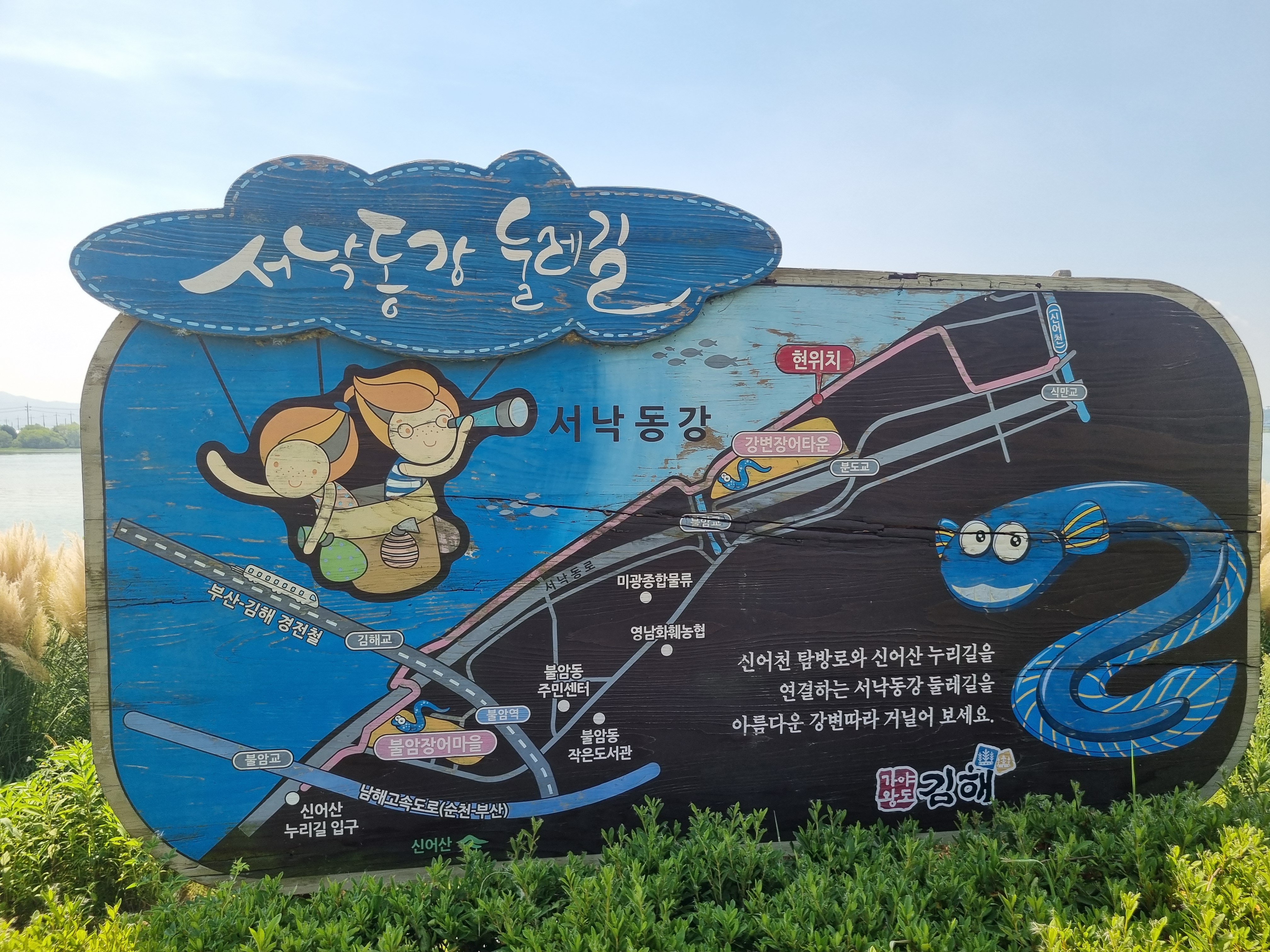 ↑ 서낙동강 둘레길. 지도에 '현위치'라고 표시된 곳이 팜파스군락지 임.