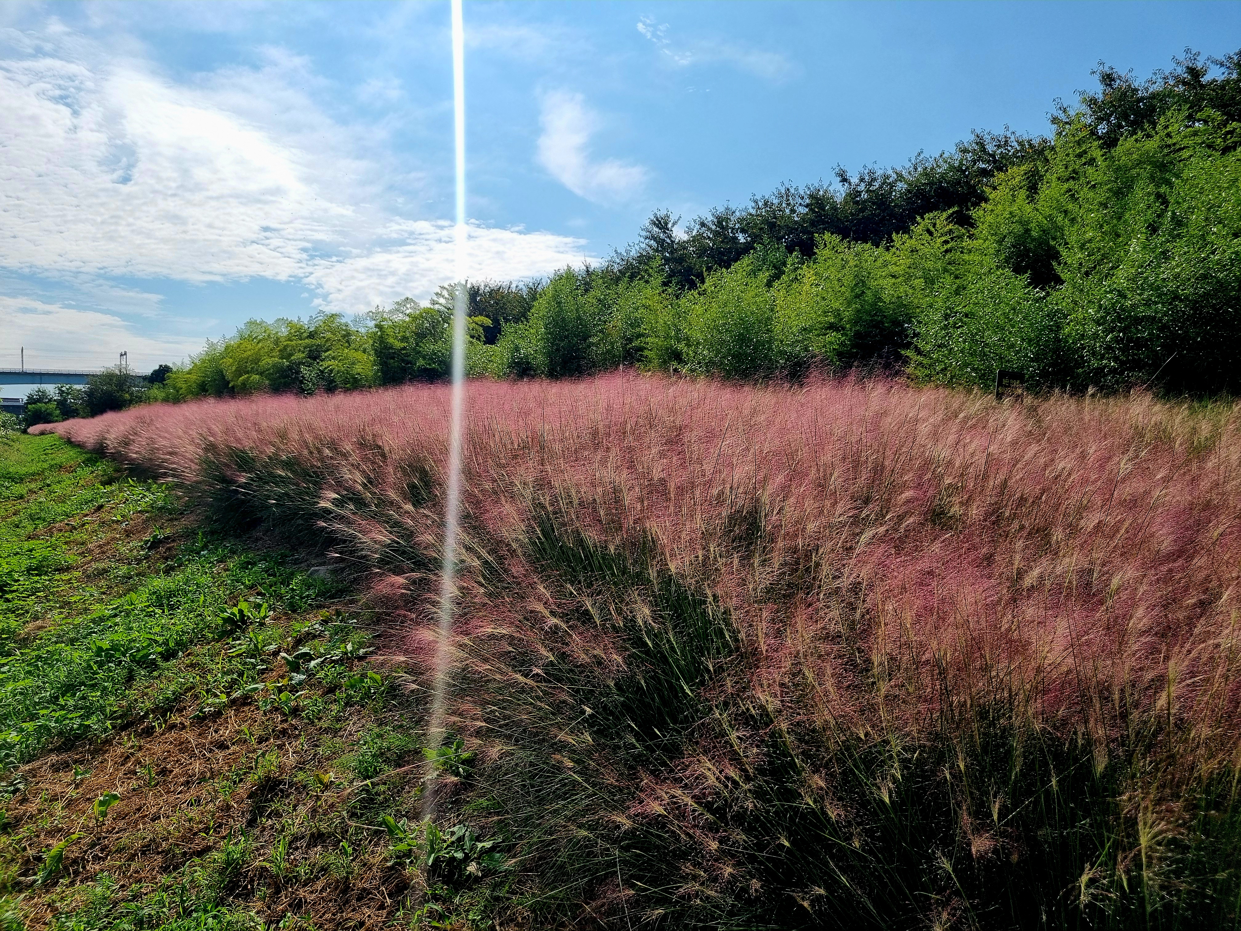 며칠 더 기다려야 핑크뮬리의 고운 자태를 볼 수 있을 듯.