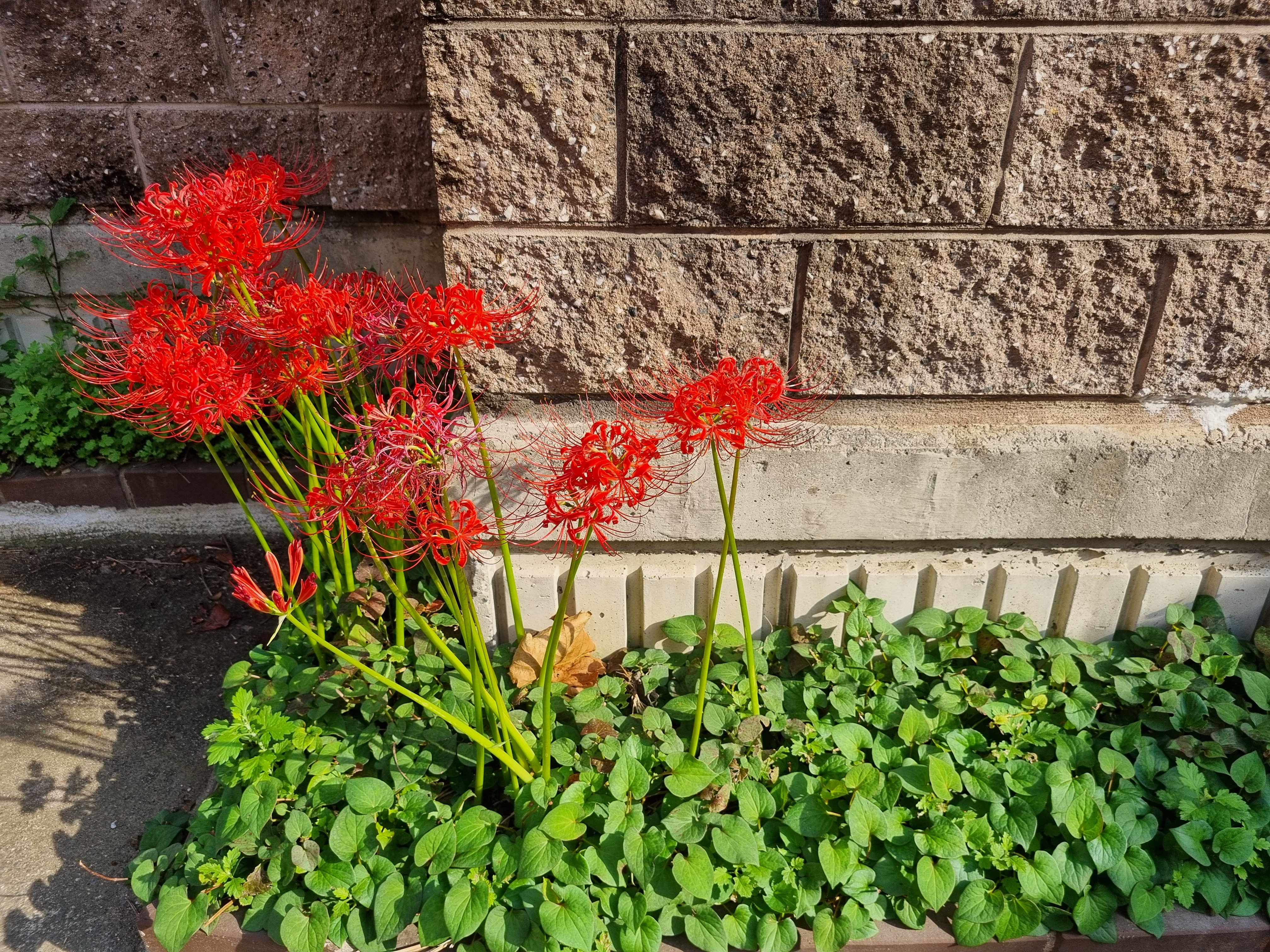 ↑ 역으로 돌아오는 길, 어느 집 담장 아래 꽃무릇.