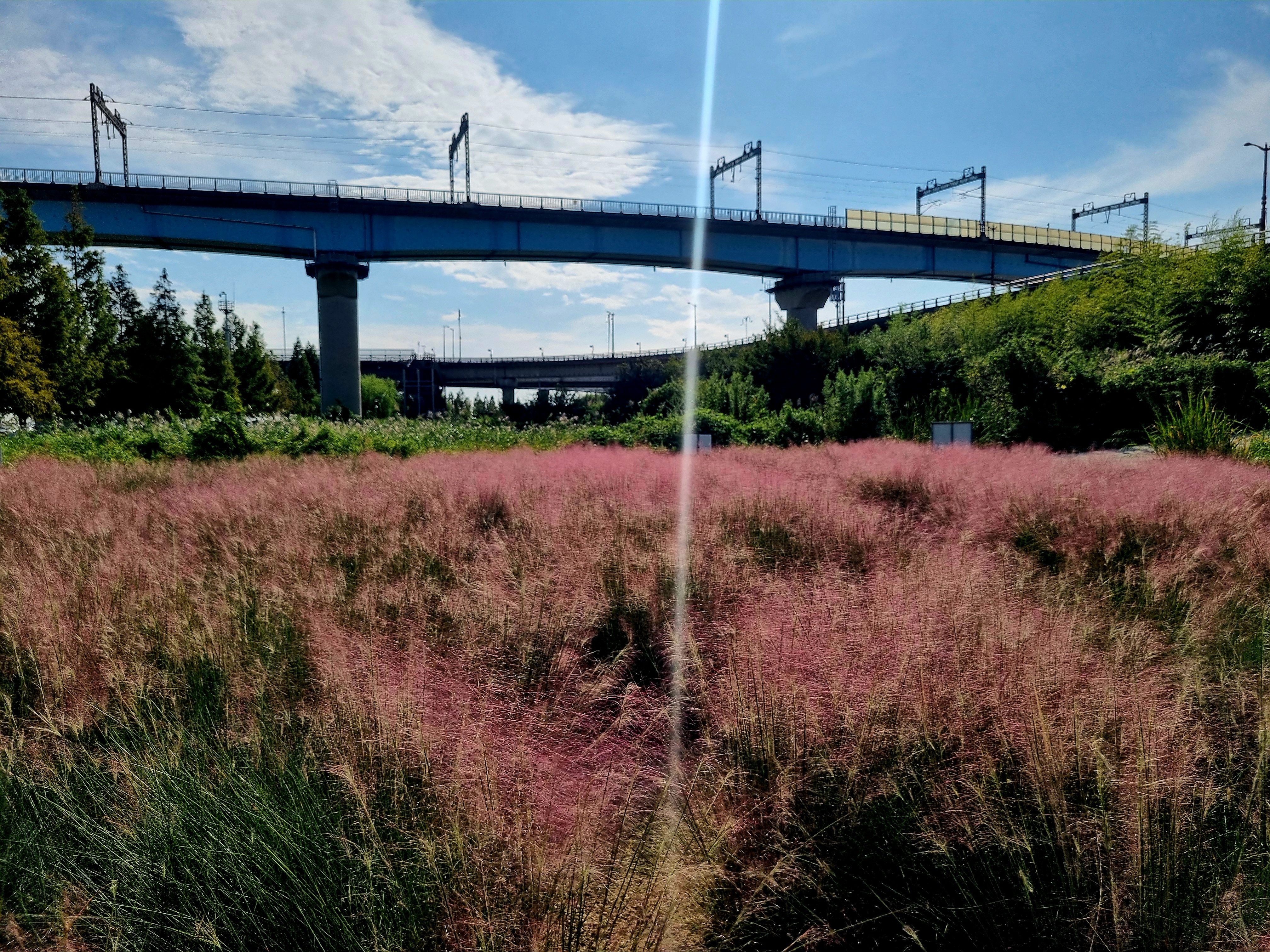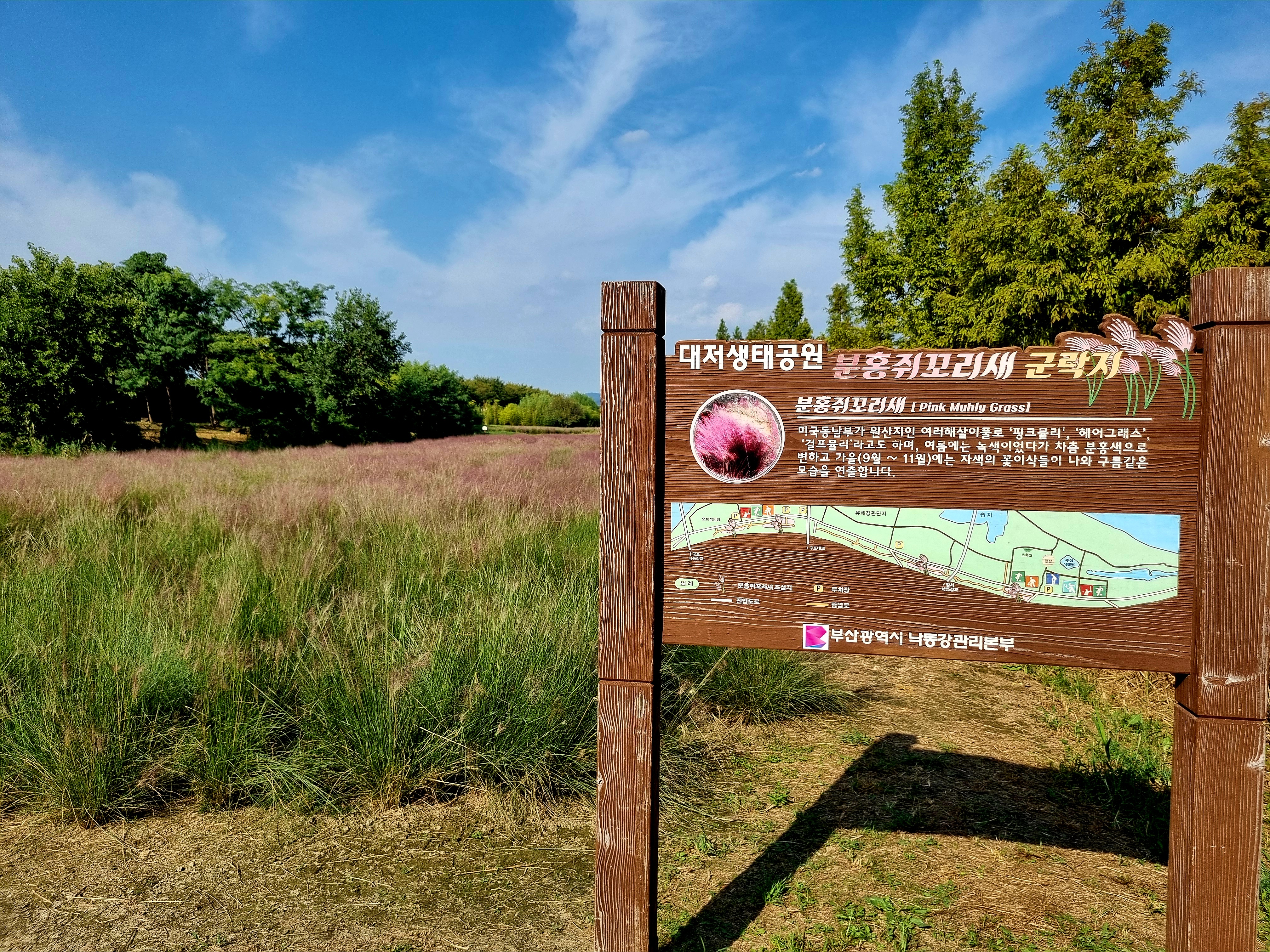 ↑ 대저생태공원 분홍쥐꼬리새 군락지. 원산지는 미국 동남부. 핑크뮬리, 헤어그래스 등으로 불리기도----.