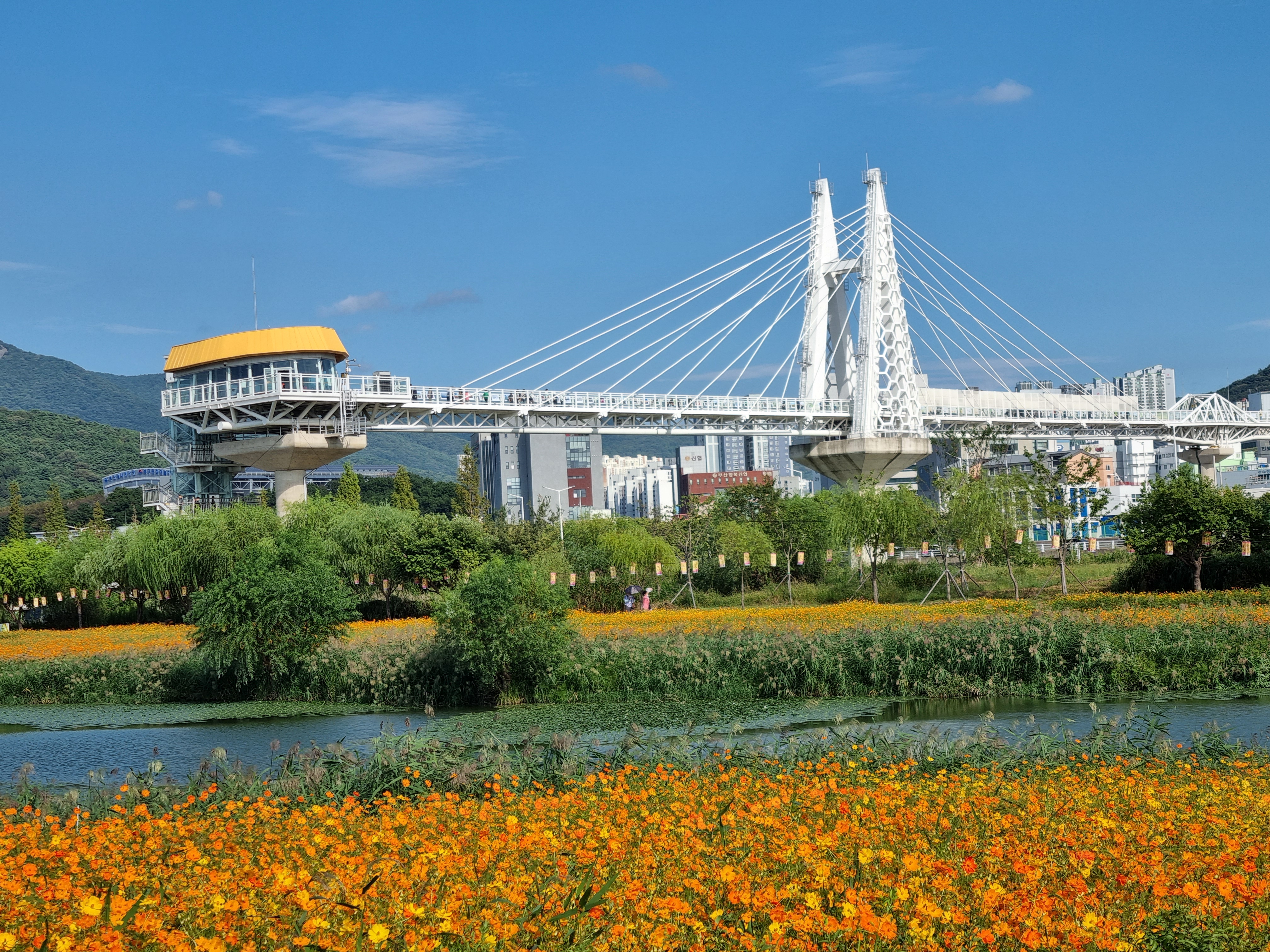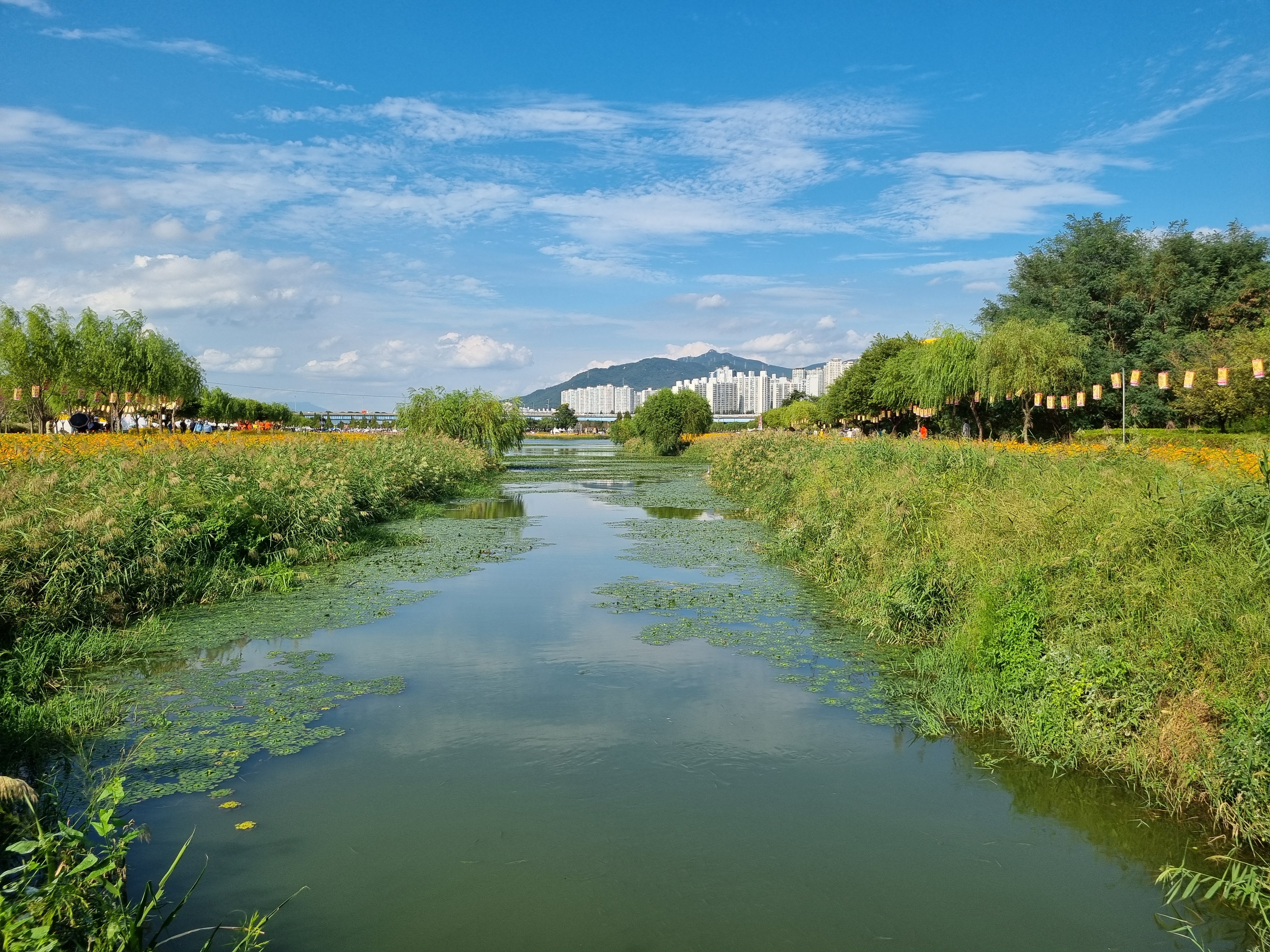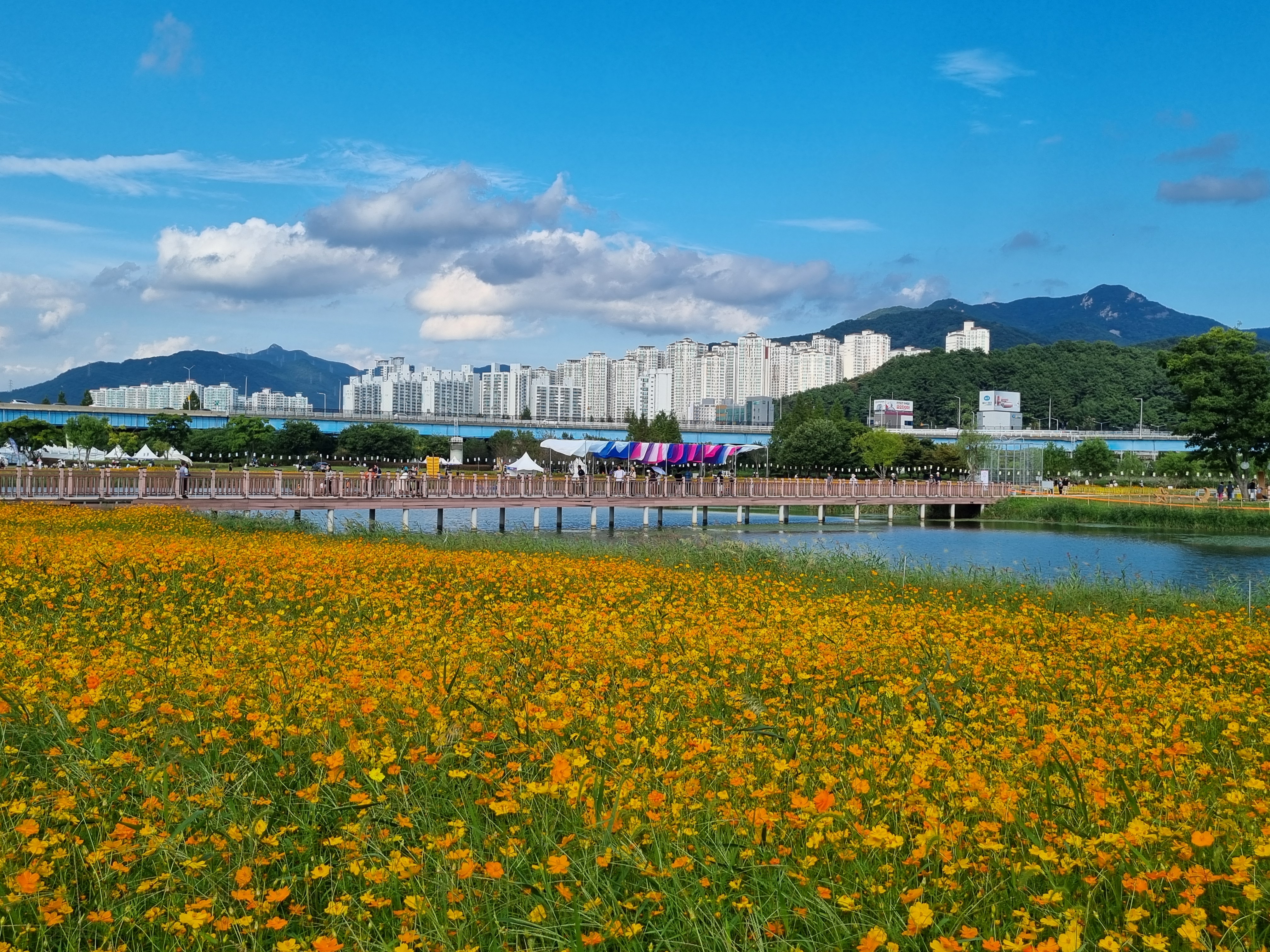 연꽃단지 주변은 온통 황화코스모스 천지이다.