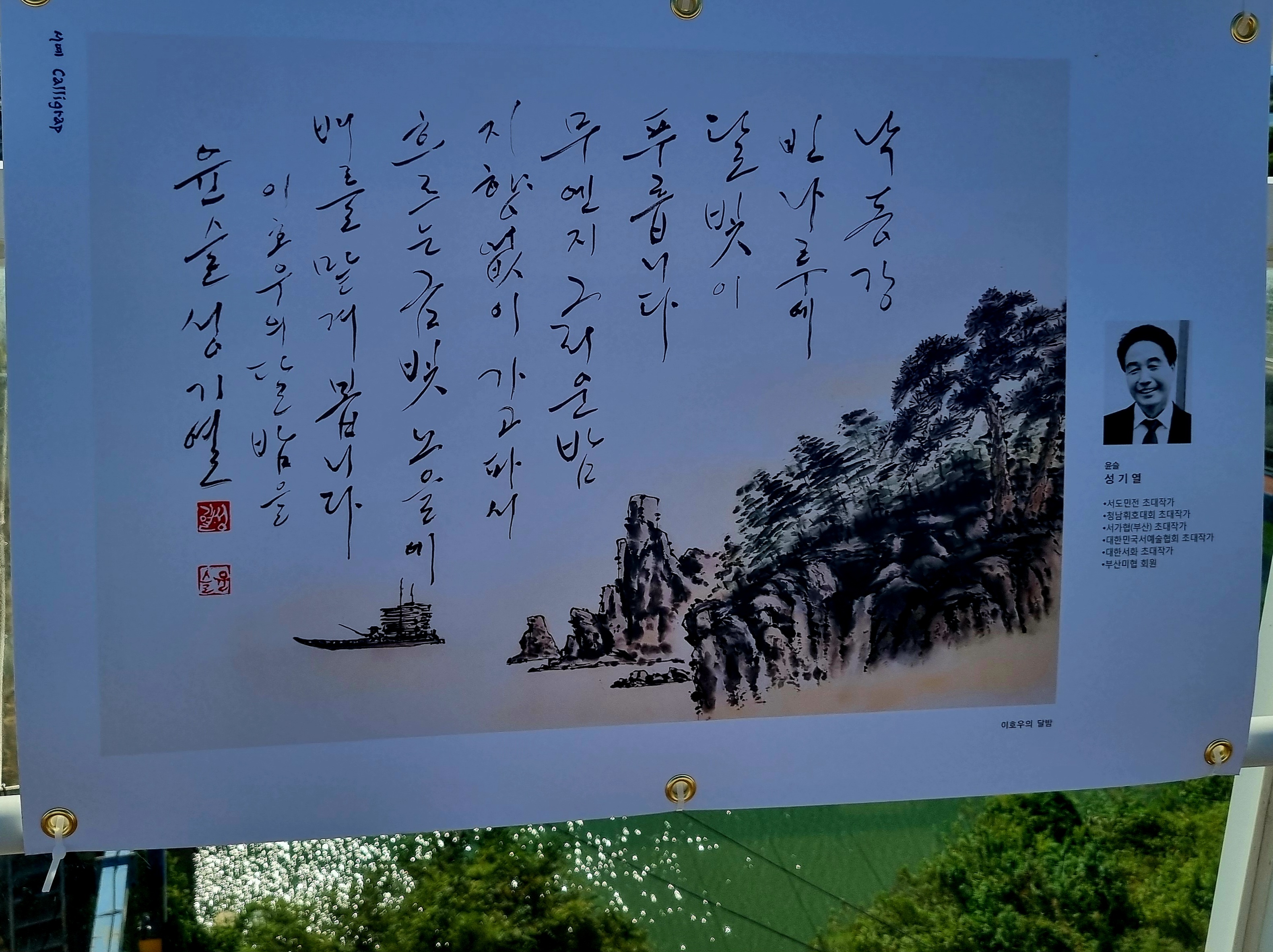 ↑ 다리 위에는 시화전. 그 중 하나, 아래 이호우의 달밤.