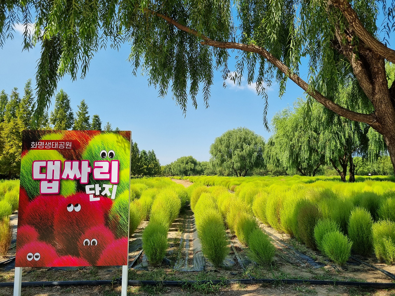 ☞ 대중교통을 이용하려면 수정역 3번 출구에서 화명생태공원 연결 보도를 지나면 댑싸리를 볼 수있다.