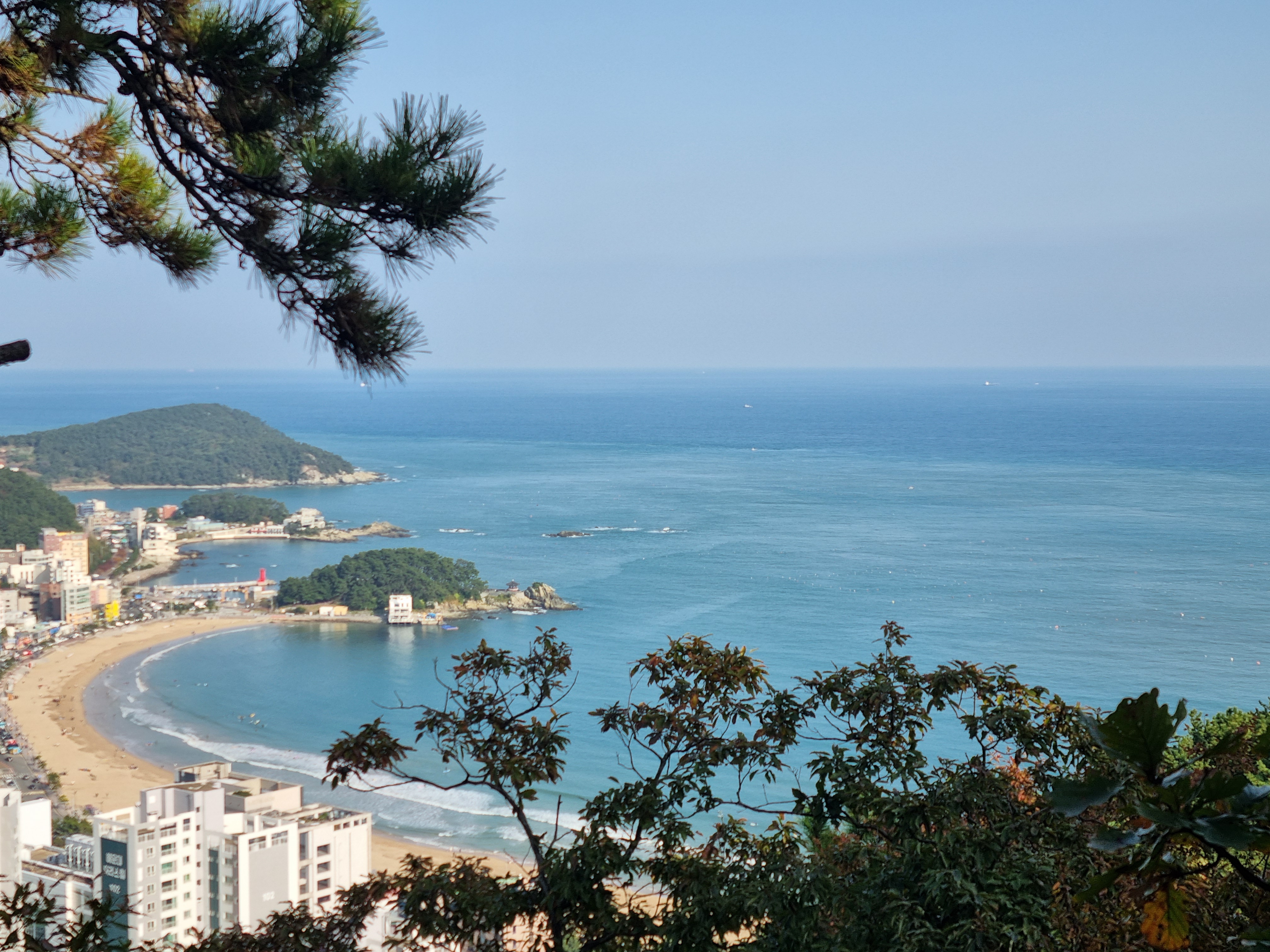 ↑ 소나무 가지 사이로 송정 앞 바다를 당겨 본다. 송정해수욕장, 송일정, 시랑산이 ----.