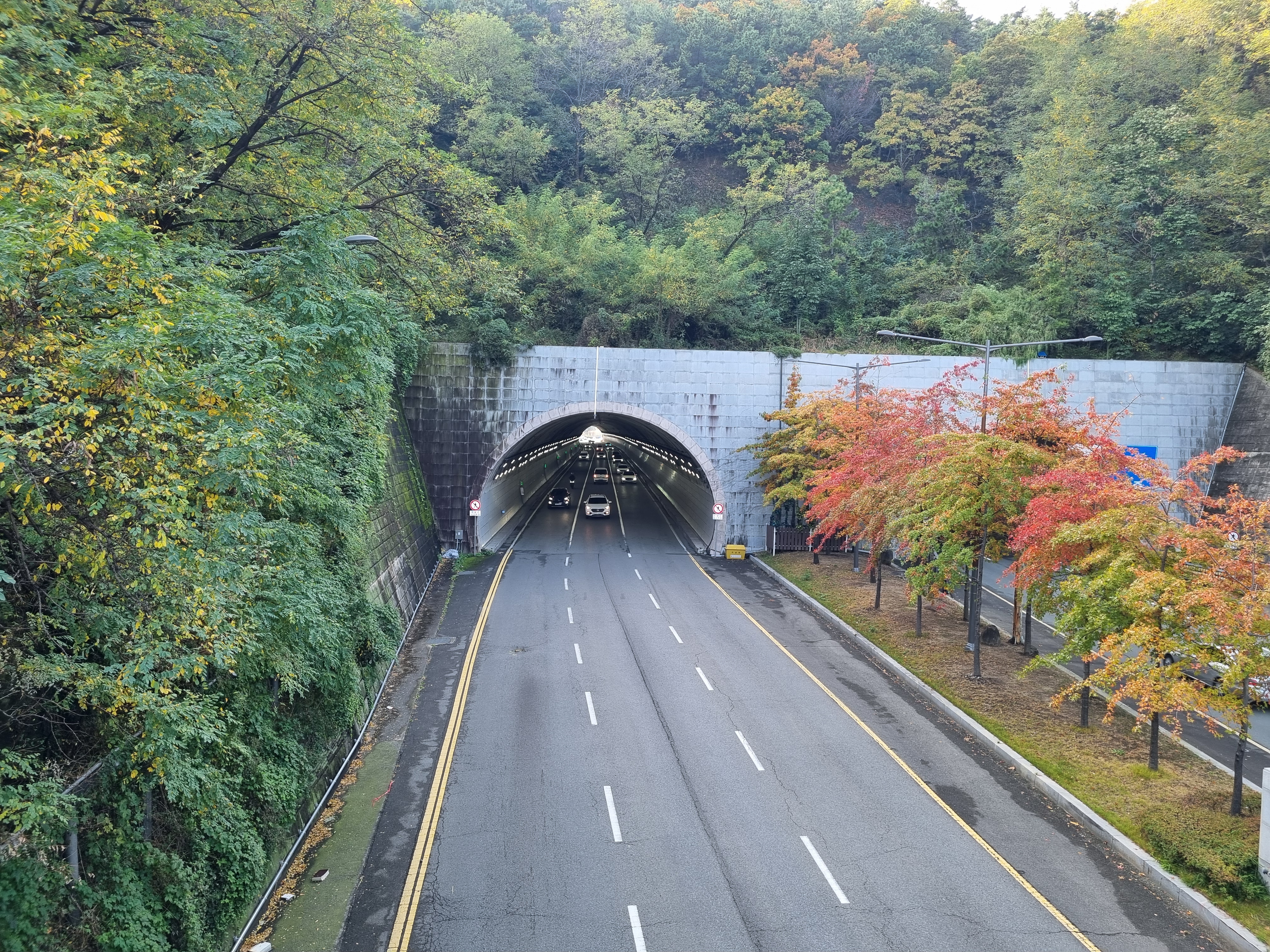 ↑ 송정터널 앞 단풍이 곱게 물들어 간다. 터널 끝이 보인다.