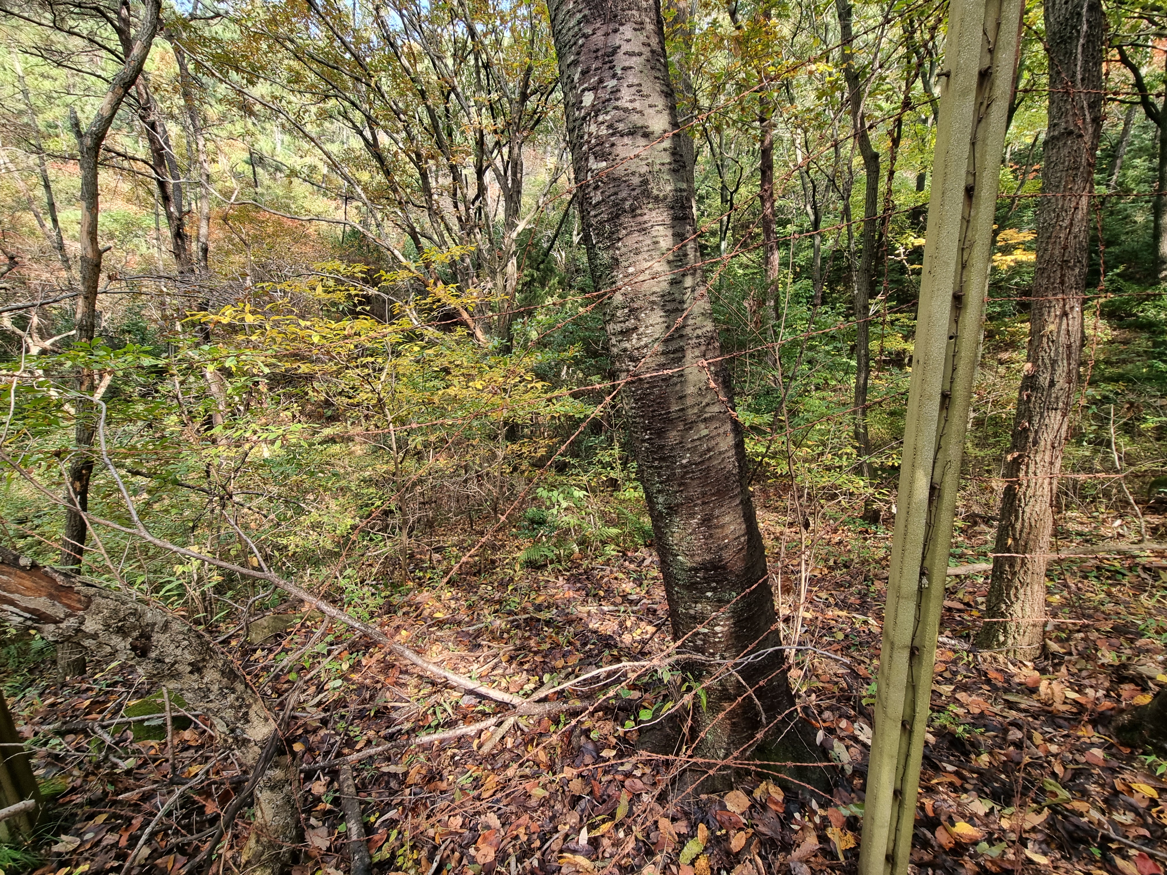 ↑ 옛길 옆에는 녹쓴 철조망이 ----.