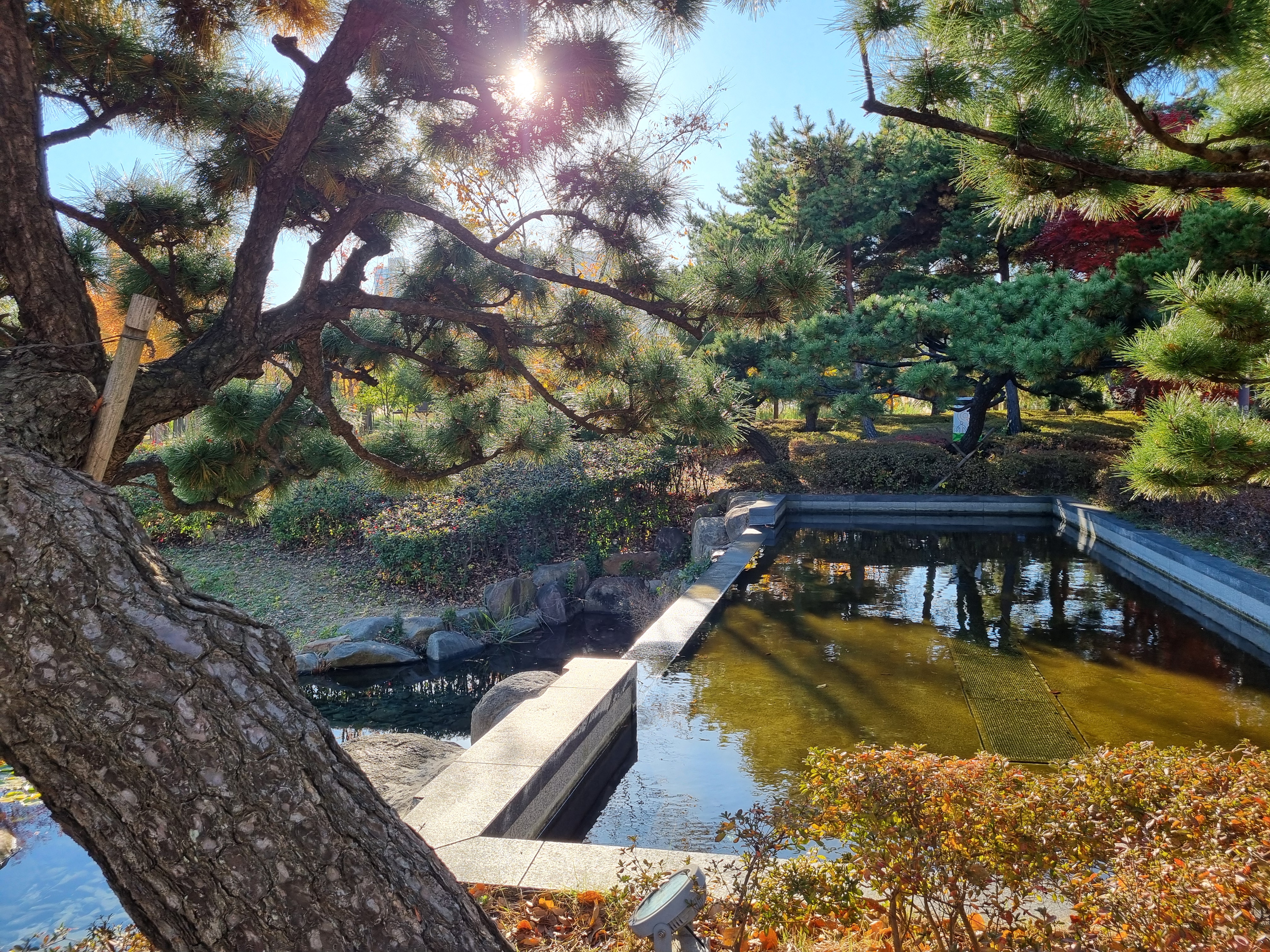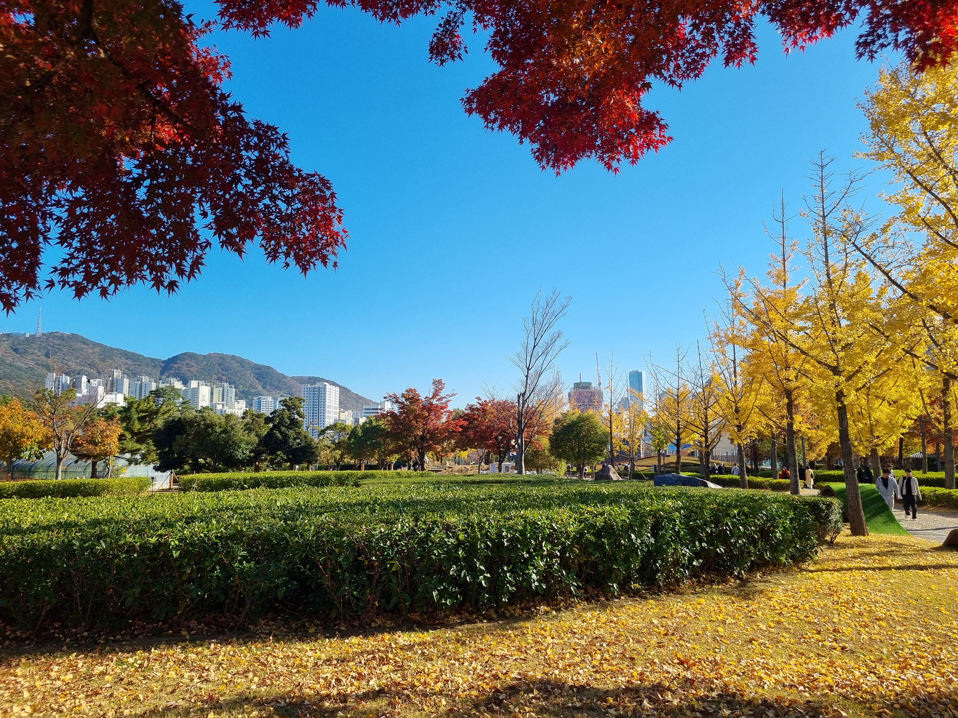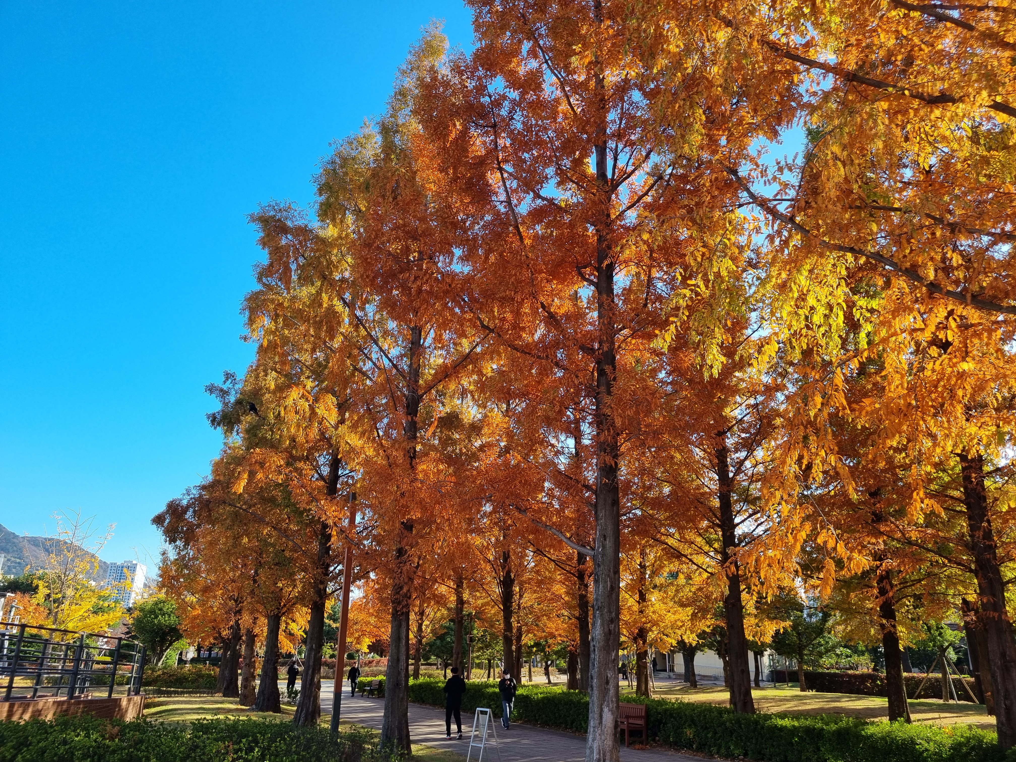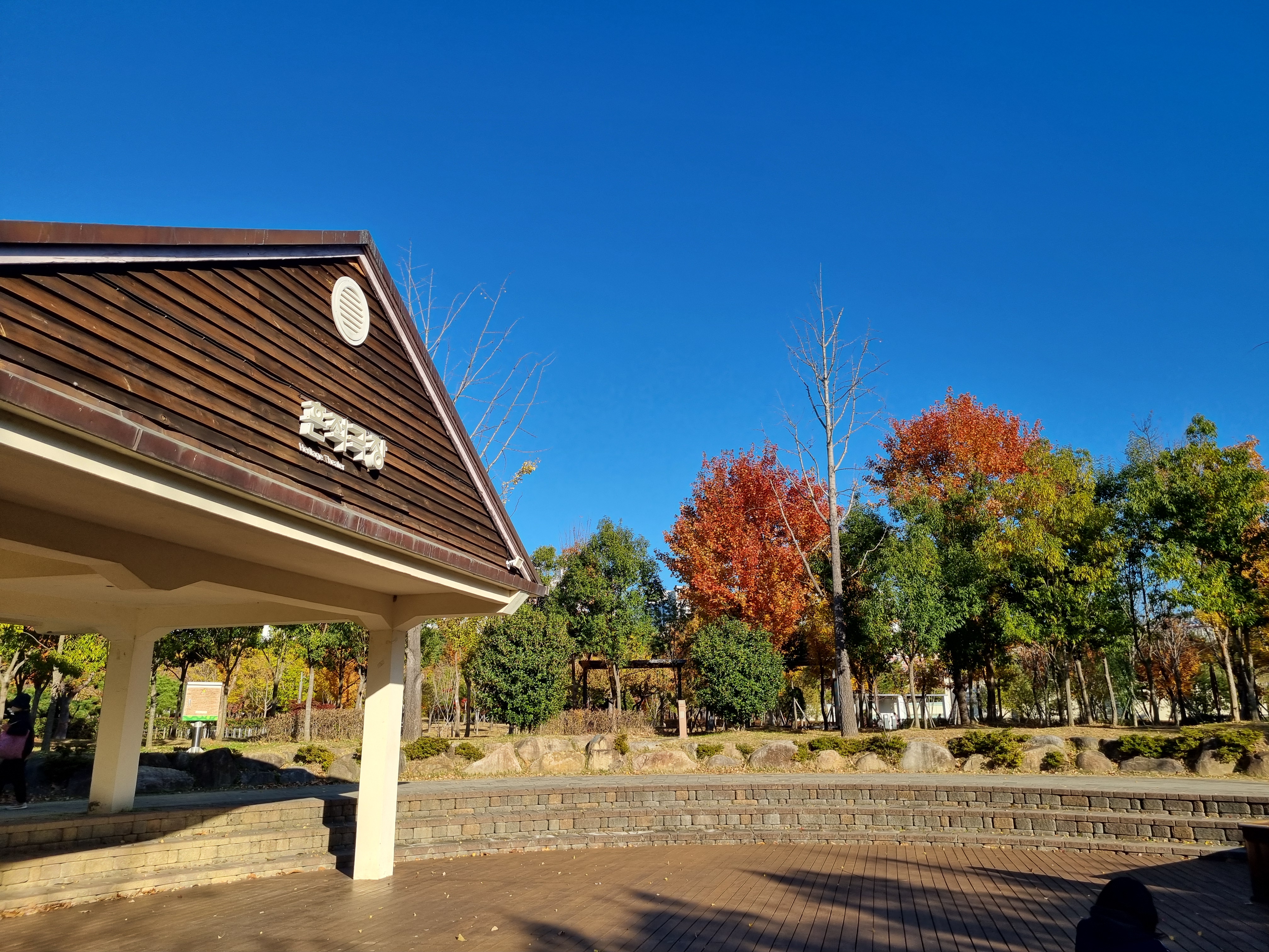 ↑ 하늘은 파랗고, 나무는 가을색이 완연하다.
