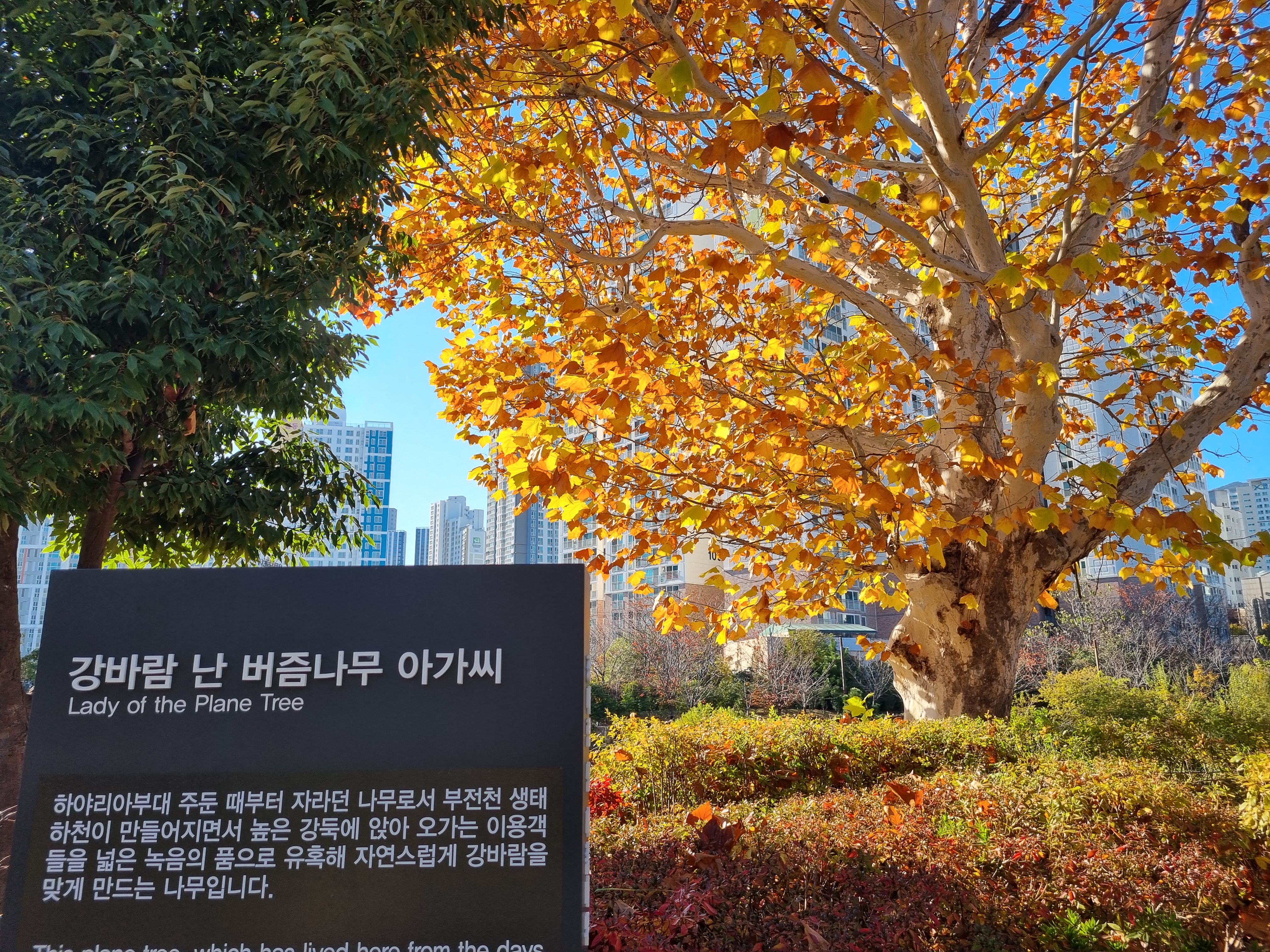 ↑ 강바람 난 버즘나무 아가씨.